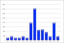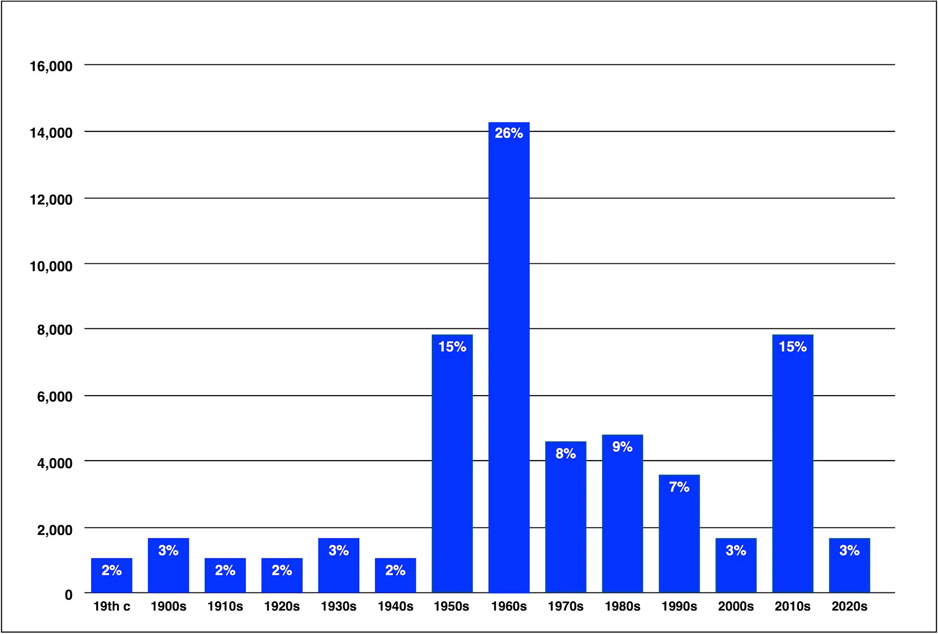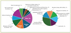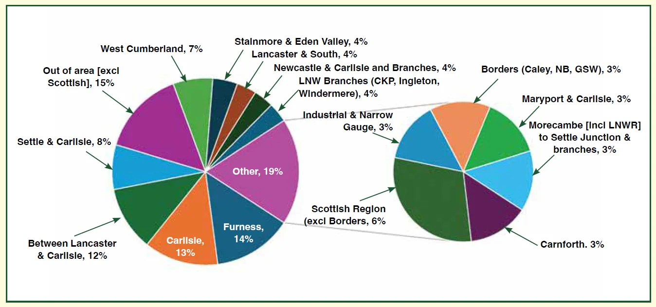 CRA’s photo collections collectively now contain over 60,000 digitised images, and that total is growing rapidly. The images themselves date from the mid-19th century right up to the present day and cover every facet of the railways of Cumbria. Geographically they cover the whole CRA area, with around 15% being taken outside that area. Details of the temporal and geographical spread of images is displayed in the charts below.